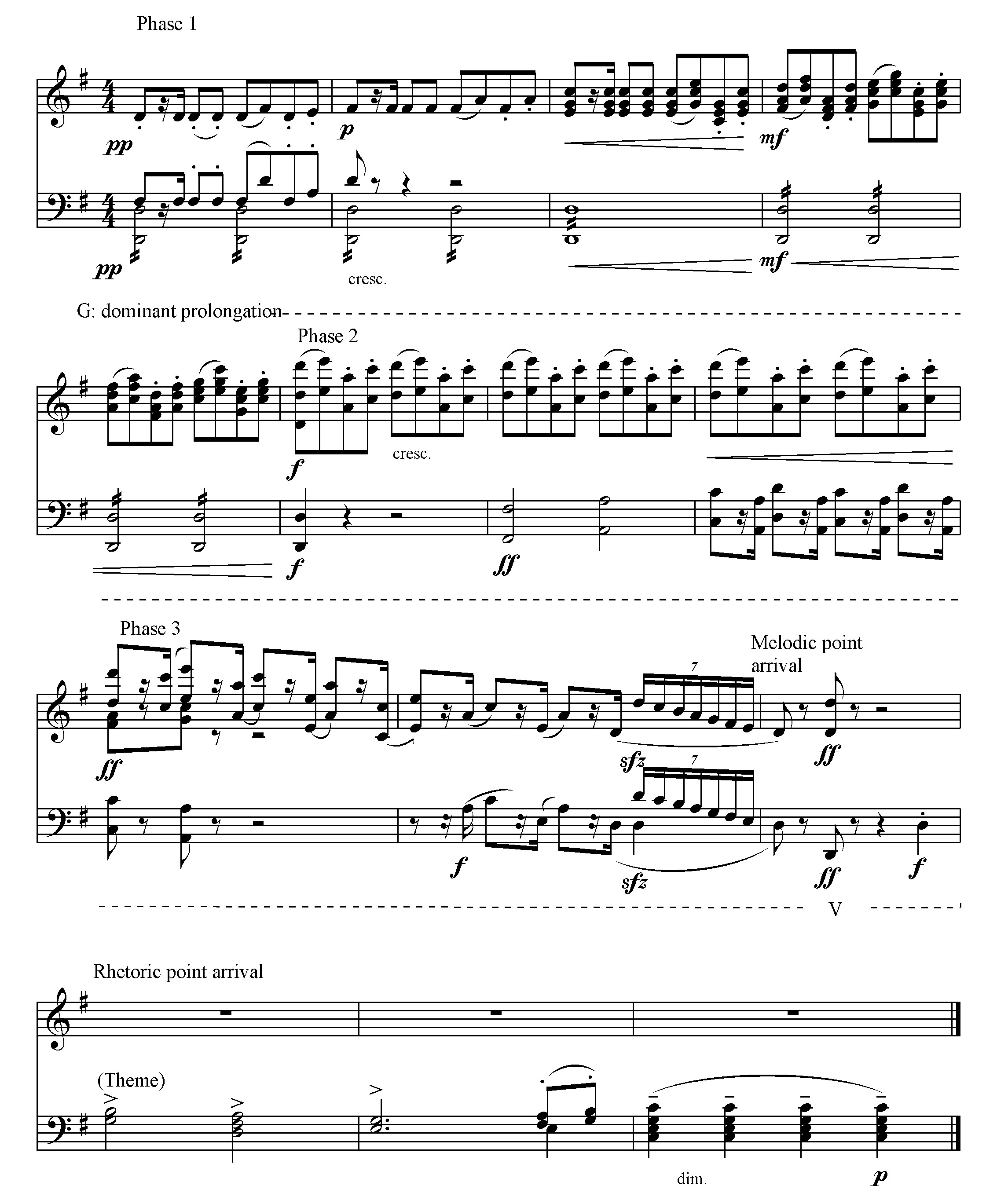 O artigo analisa um gesto retórico que aparece frequentemente no repertório tonal e pós-tonal, a partir de uma análise de Patrick McCreless realizada em 2006 sobre o mesmo assunto. Defende-se a ideia de que o gesto é mais limitado do que o autor propõe nessa referência, reduzindo-o a três fases relacionadas com o processo da expectativa. Para realizar a análise foram revisadas as definições de gesto em geral e de gesto retórico em particular, propostas por renomados pesquisadores. A análise é baseada em conceitos que envolvem: a participação do corpo na audição de música, a atribuição de significado, a audição metafórica, e, finalmente, o modelo de expectativas recentemente proposto por David Huron. Os casos de gesto que aparecem no repertório pianístico e sinfônico, desde o século XVIII até o principio do século XX são investigados.